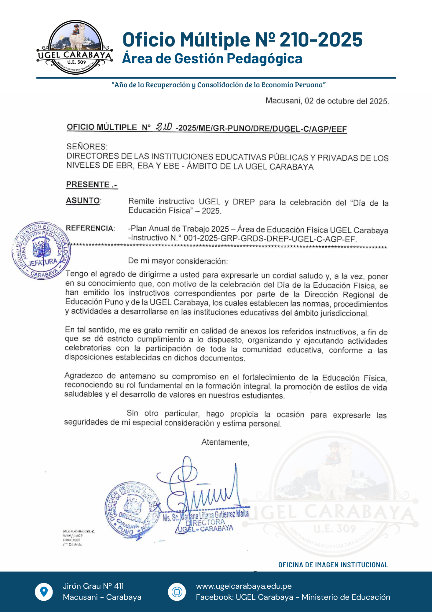 REMITE INSTRUCTIVO UGEL Y DREP PARA LA CELEBRACIÓN DEL "DÍA DE LA EDUCACIÓN FÍSICA" - 2025 ✅DESCARGAR ⏭️OF. MULT. Nº 210-2025_INSTRUCTIVOS 2025