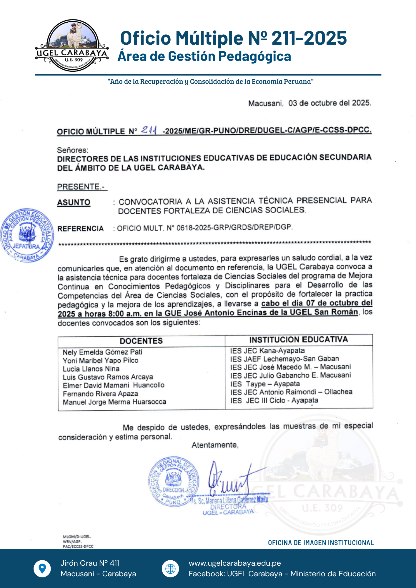 CONVOCATORIA A LA ASISTENCIA TÉCNICA PRESENCIAL PARA DOCENTES FORTALEZA DE CIENCIAS SOCIALES 2025 ✅DESCARGAR ⏭️OF. MULT. Nº 211-2025