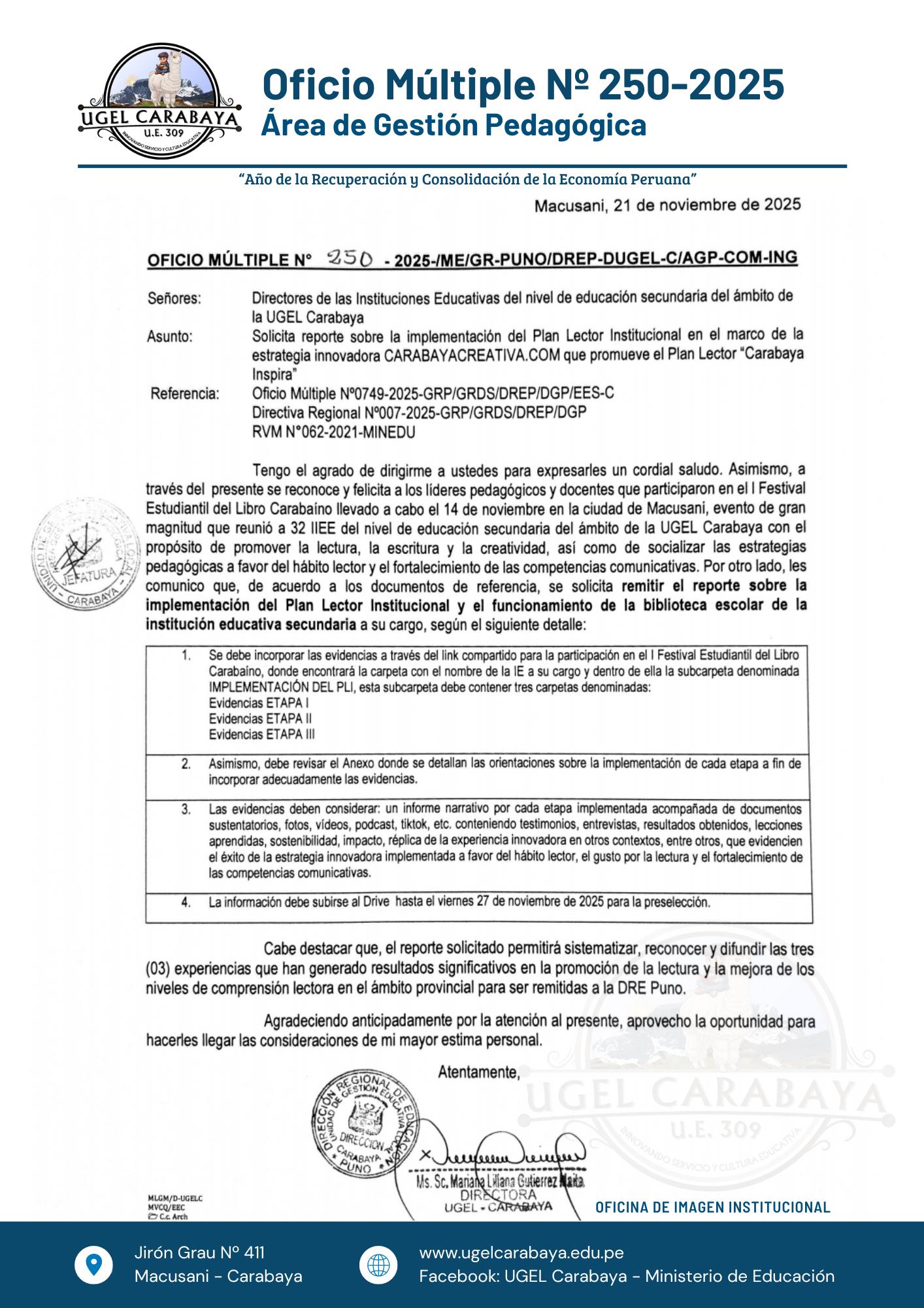 SOLICITA REPORTE SOBRE LA IMPLEMENTACIÓN DEL PLAN LECTOR INSTITUCIONAL EN EL MARCO DE LA ESTRATEGIA INNOVADORA CARABAYACREATIVA.COM QUE PROMUEVE EN PLAN LECTOR "CARABAYA INSPIRA" - 2025 ✅DESCARGAR ⏭️PLAN LECTOR_DREP 2025_ETAPAS PLI