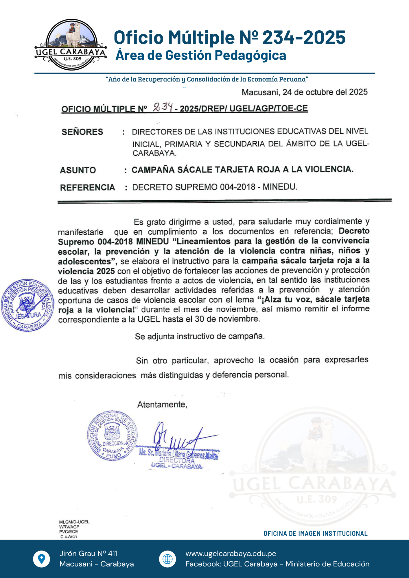 CAMPAÑA SÁCALE TARJETA ROJA A LA VIOLEN: "¡ALZA TU VOZ, SÁCALE TARJETA ROJA A LA VIOLENCIA!" ✅DESCARGAR ⏭️OF. MULT. Nº 234-2025
