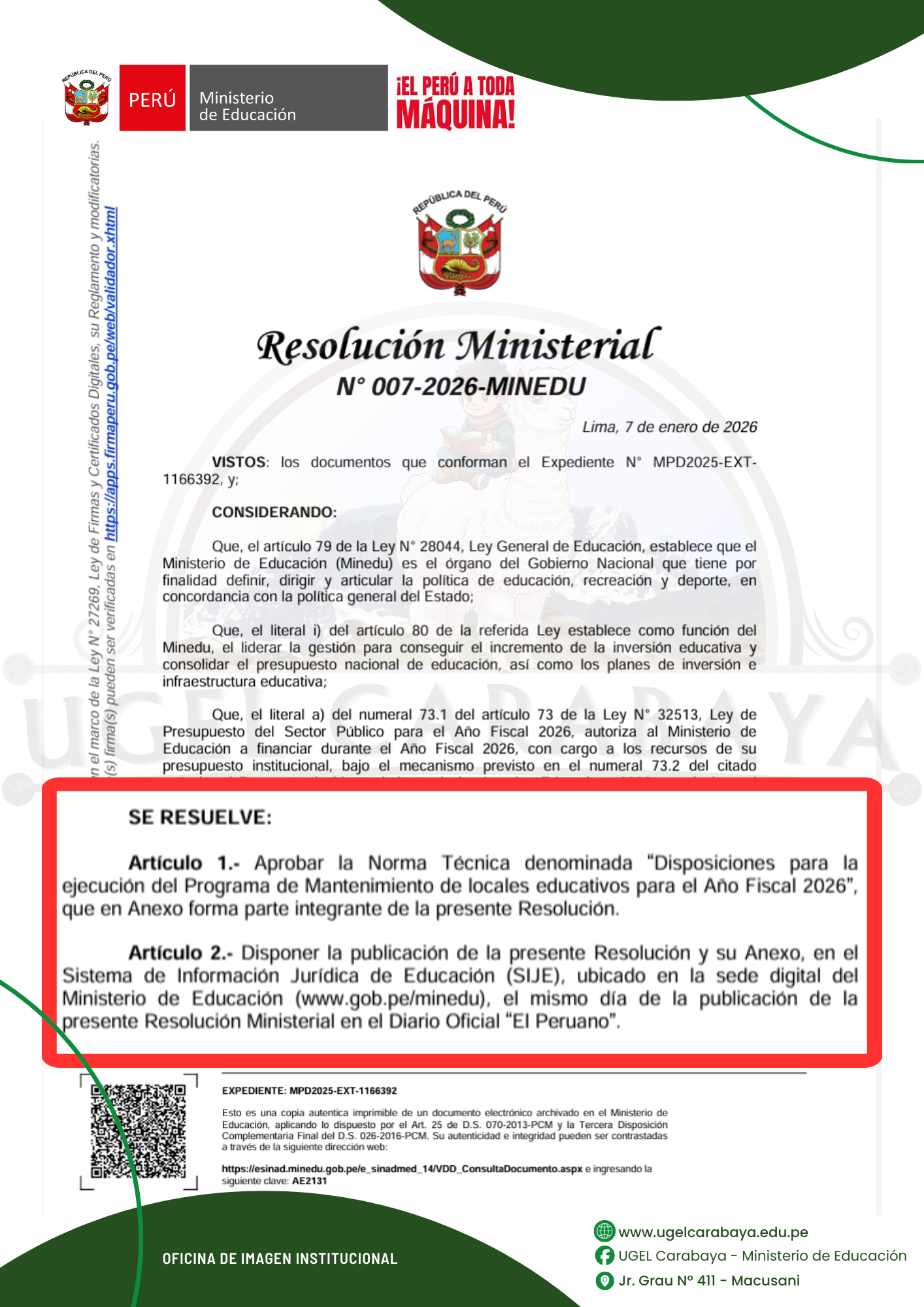✅DESCARGAR ⏭️ RM Nº 007-2026-MINEDU