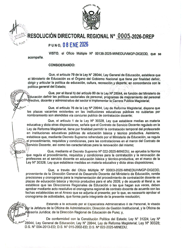 RESOLUCIÓN DIRECTORAL REGIONAL N°0005-2026-DREP, CRONOGRAMA DE CONTRATO DOCENTE 2026 ✅DESCARGAR ⏭️RESOLUCIÓN DIRECTORAL REGIONAL N°0005-2026-DREP, CRONOGRAMA DE CONTRATO DOCENTE 2026
