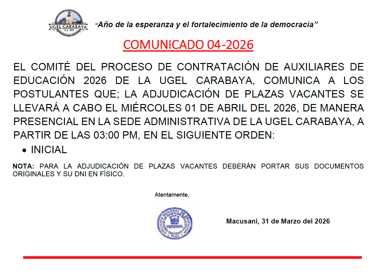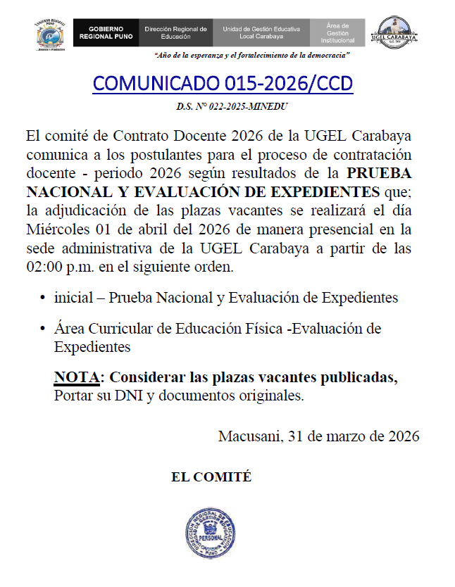RESULTADOS PRELIMINARES DE PROCESO DE CONTRATACIÓN DOCENTE