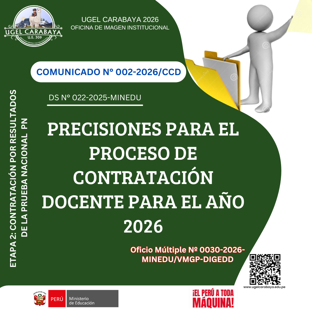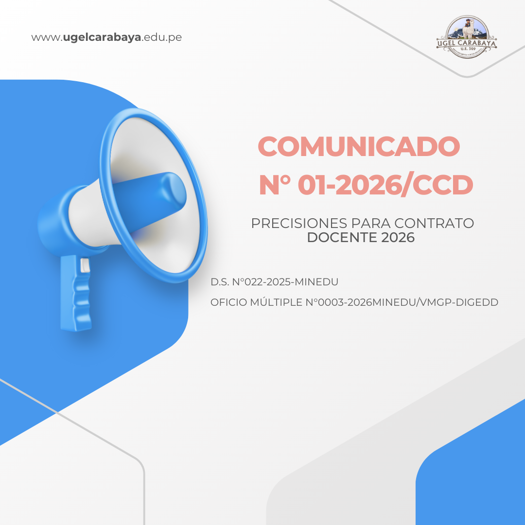 COMUNICADO N° 01-2026/CCD RECURSOS PARA DESCARGAR: PRECISIONES PARA CONTRATO DOCENTE 2026 - ÁMBITO UGEL CARABAYA