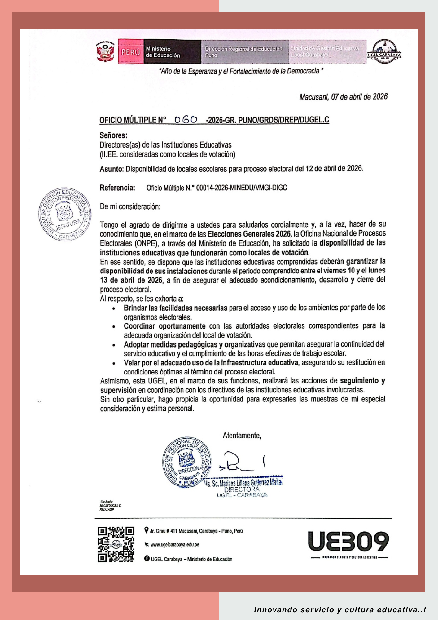 DISPONIBILIDAD DE LOCALES ESCOLARES PARA EL PROCESO ELECTORAL DEL 12 DE ABRIL DE 2026
