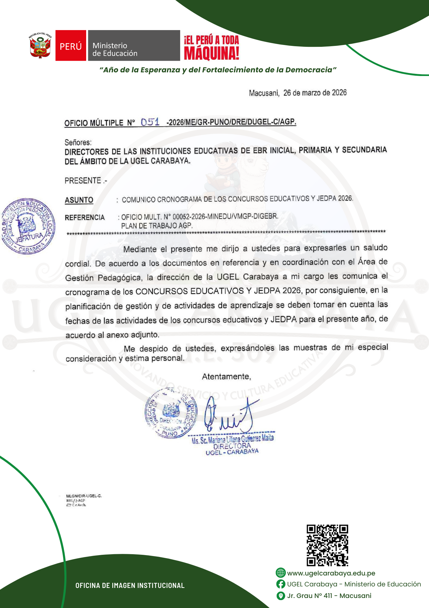 COMUNICO CRONOGRAMA DE LOS CONCURSOS EDUCATIVOS Y JEDPA 2026