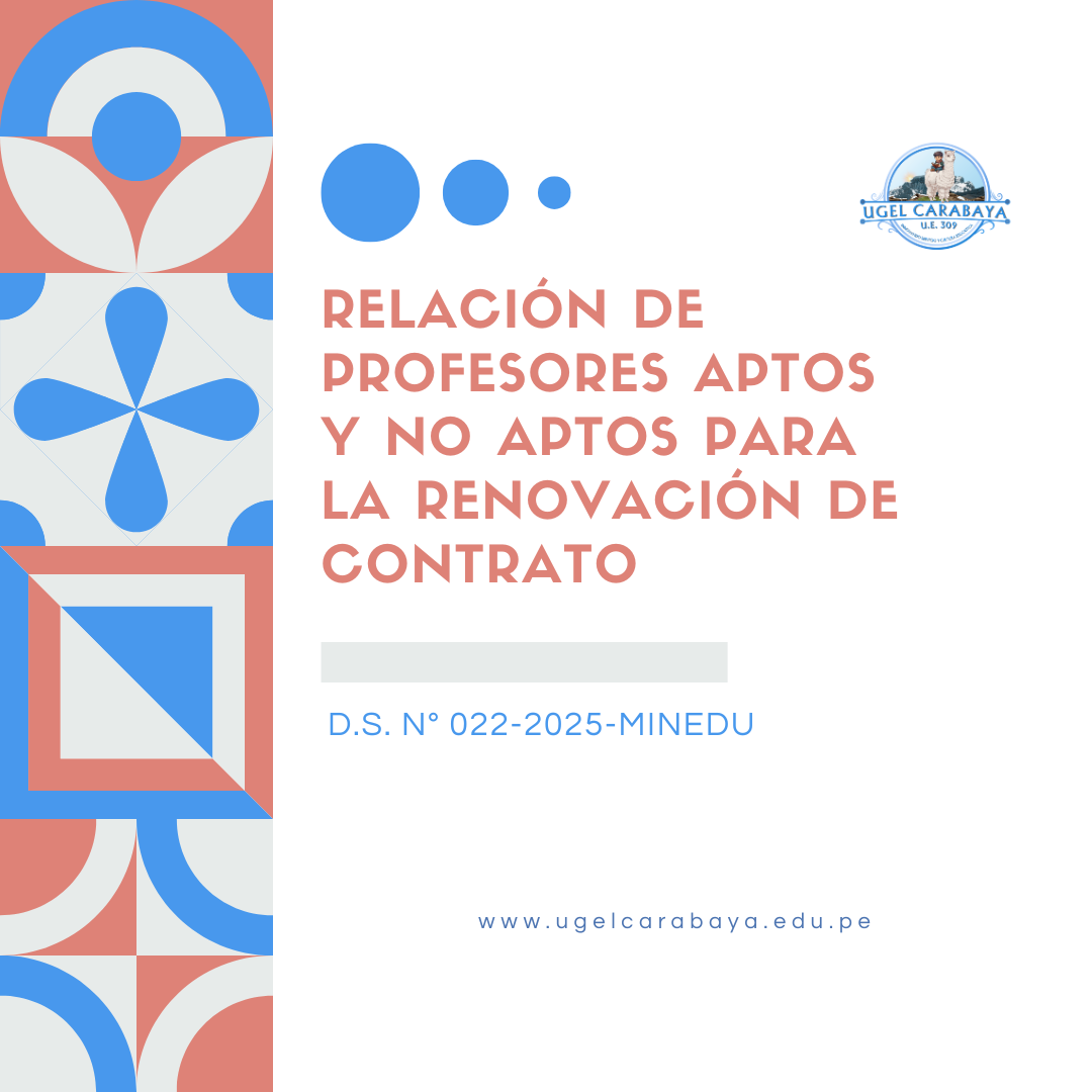 RELACIÓN DE PROFESORES APTOS Y NO APTOS PARA LA RENOVACIÓN DE CONTRATO EN EB Y ETP, EN EL MARCO DEL D.S. N° 022-2025-MINEDU RECURSOS A DESCARGAR: RELACIÓN DE PROFESORES APTOS Y NO APTOS PARA LA RENOVACIÓN DE CONTRATO EN EB Y ETP.