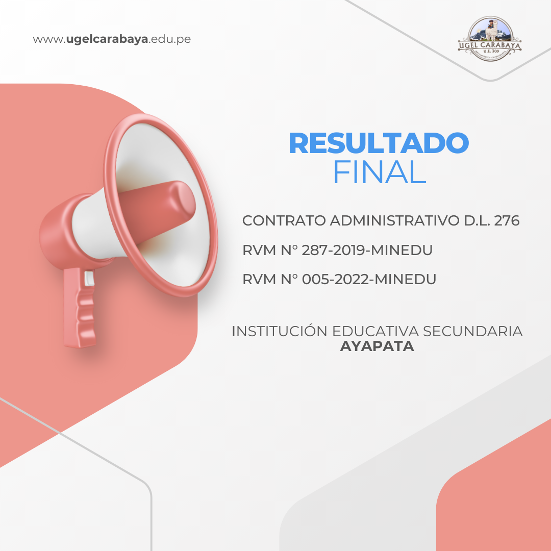 RESULTADO FINAL DE CONTRATO ADMINISTRATIVO D.L. 276 - UGEL CARABAYA 2026 RECURSOS PARA DESCARGAR: RESULTADO FINAL DE CONTRATO ADMINISTRATIVO D.L. 276 - UGEL CARABAYA