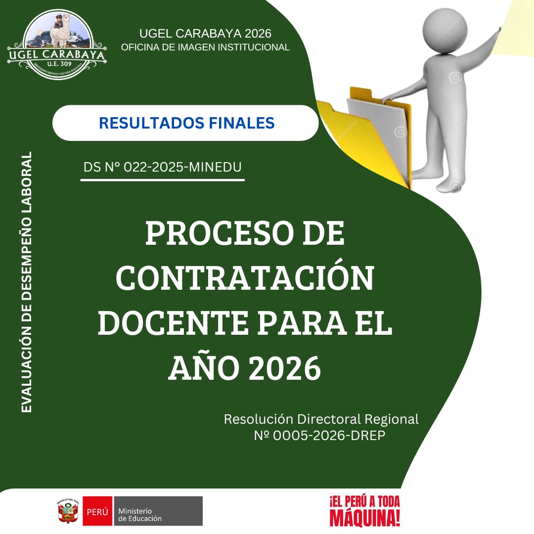 PROCESO DE CONTRATACIÓN DOCENTE PARA EL AÑO 2026: RESULTADOS FINALES DE LA EVALUACIÓN DEL DESEMPEÑO LABORAL ✅DESCARGAR ⏭️RESULTADOS FINALES DE LA EVALUACIÓN DE DESEMPEÑO LABORAL Anterior Siguiente