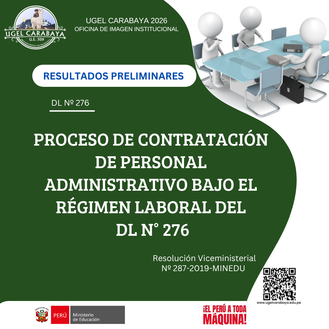 PROCESO DE CONTRATACIÓN DE PERSONAL ADMINISTRATIVO BAJO EL RÉGIMEN LABORAL DEL DL Nº 276: RESULTADOS PRELIMINARES DE LA CALIFICACIÓN DE EXPEDIENTES RECURSOS PARA DESCARGAR: 1. RESULTADOS PRELIMINARES DE LA CALIFICACIÓN DE EXPEDIENTES Anterior Siguiente