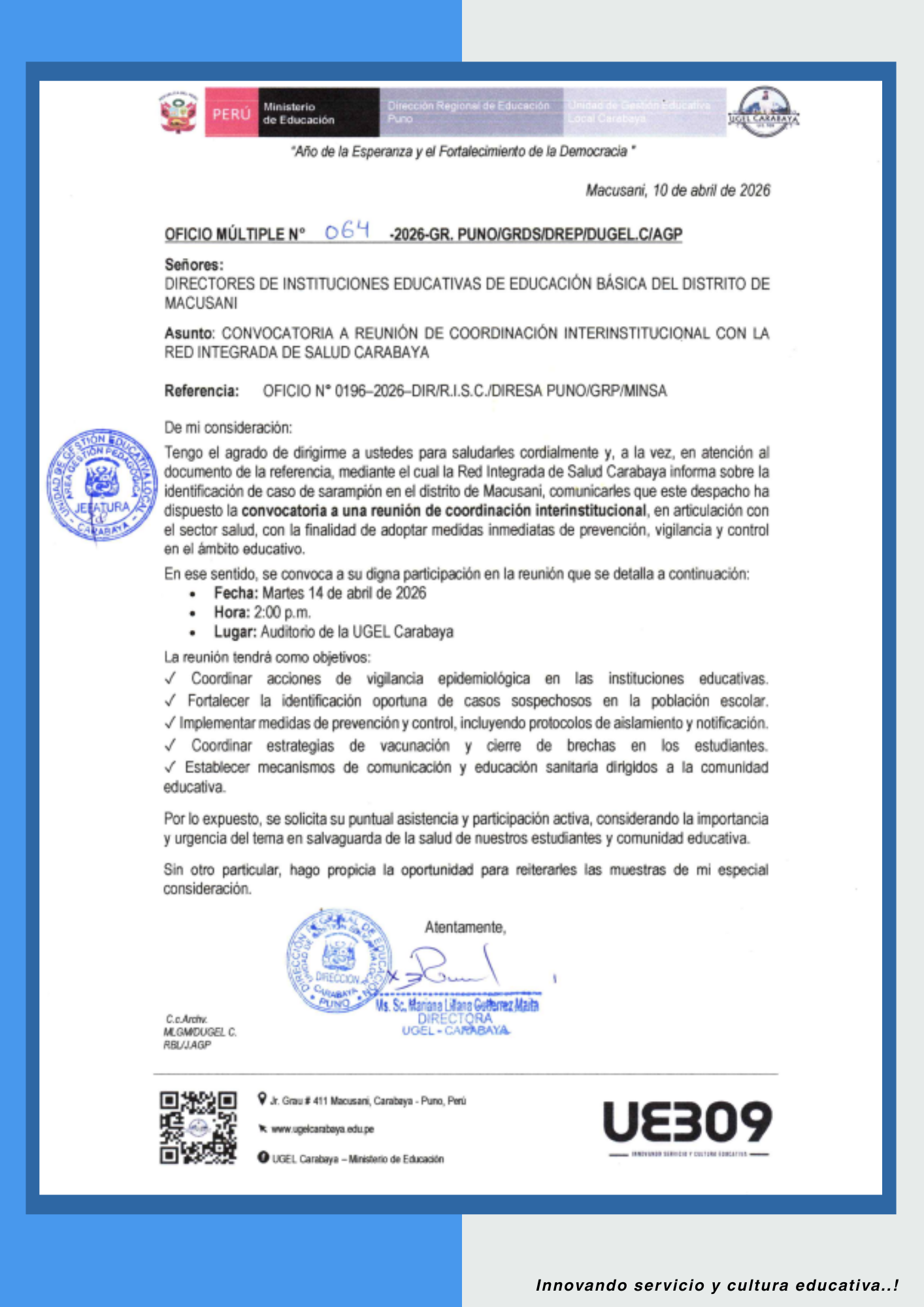 CONVOCATORIA A REUNIÓN DE COORDINACIÓN INTERINSTITUCIONAL CON LA RED INTEGRADA DE SALUD CARABAYA Siguiente