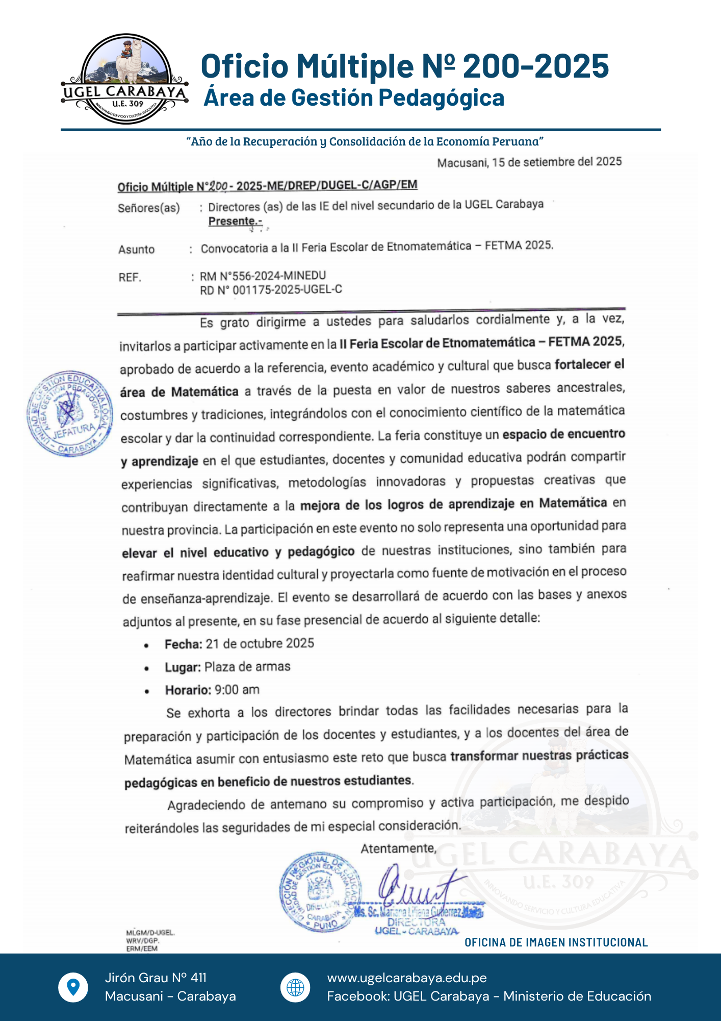 ✅DESCARGAR ⏭️OF. MULT. Nº 200-2025_BASES DE LA II FERIA ESCOLAR