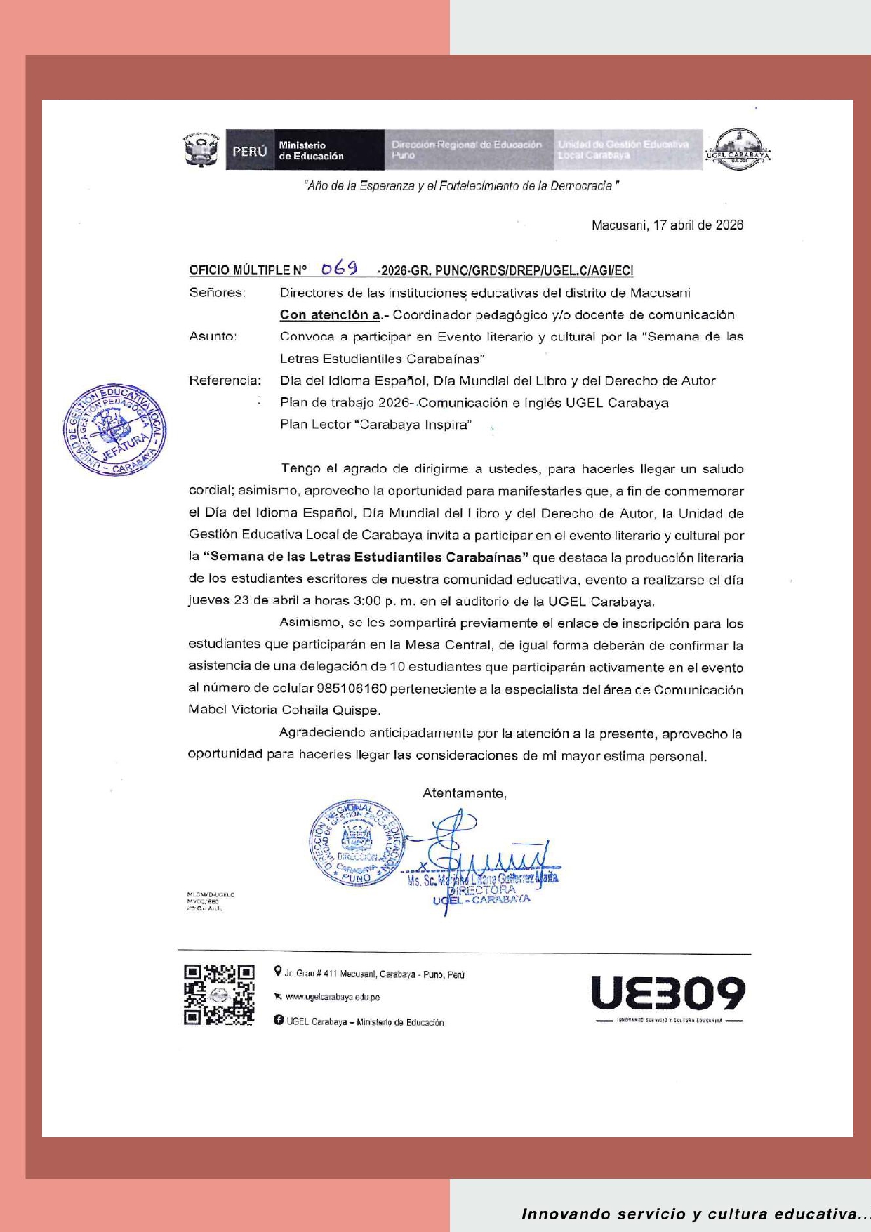 EVENTO LITERARIO Y CULTURAL POR LA "SEMANA DE LAS LETRAS ESTUDIANTILES CARABAINAS"