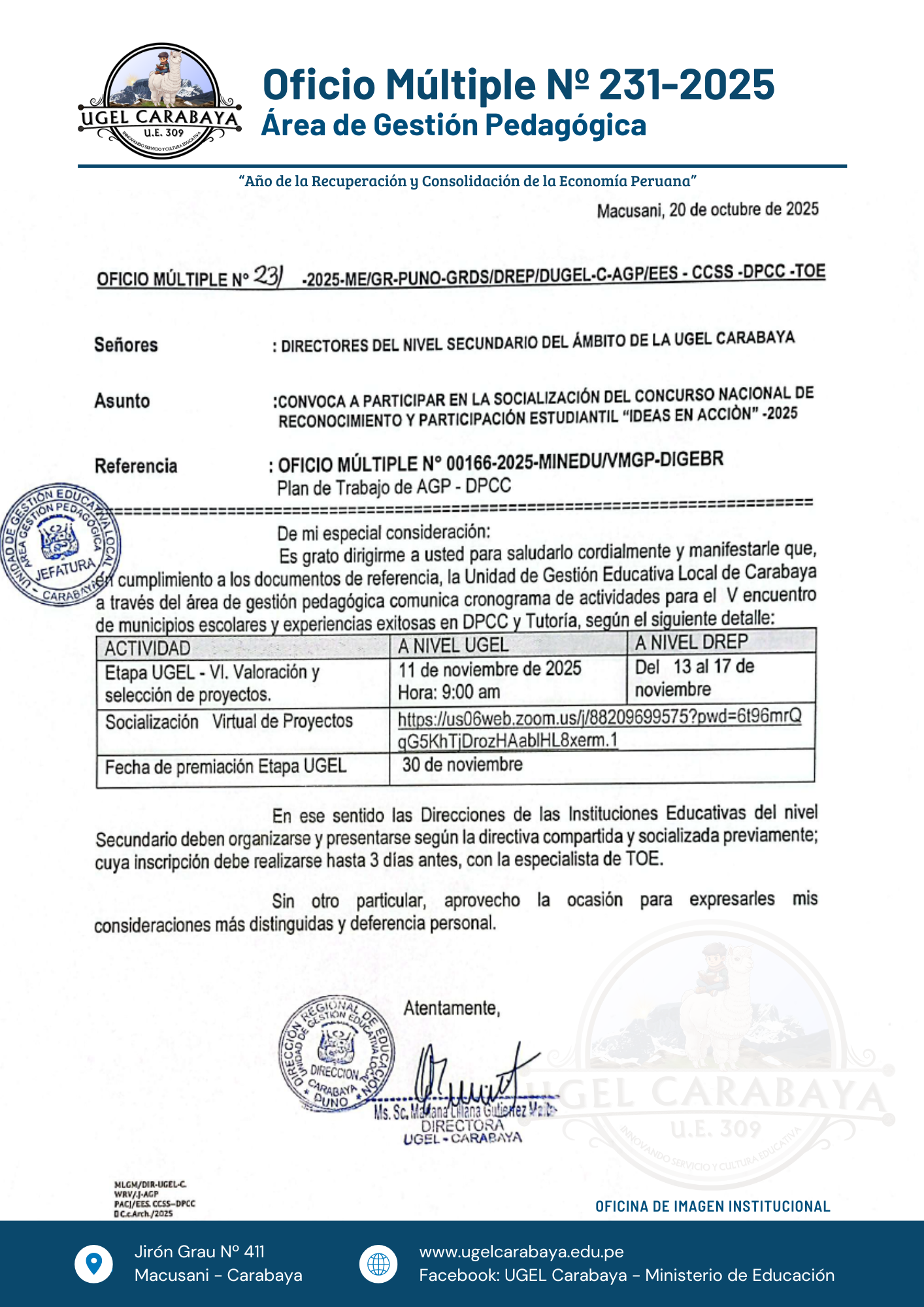 CONVOCA A PARTICIPAR EN LA SOCIALIZACIÓN DEL CONCURSO NACIONAL DE RECONOCIMIENTO Y PARTICIPACIÓN ESTUDIANTIL "IDEAL EN ACCIÓN" - 2025