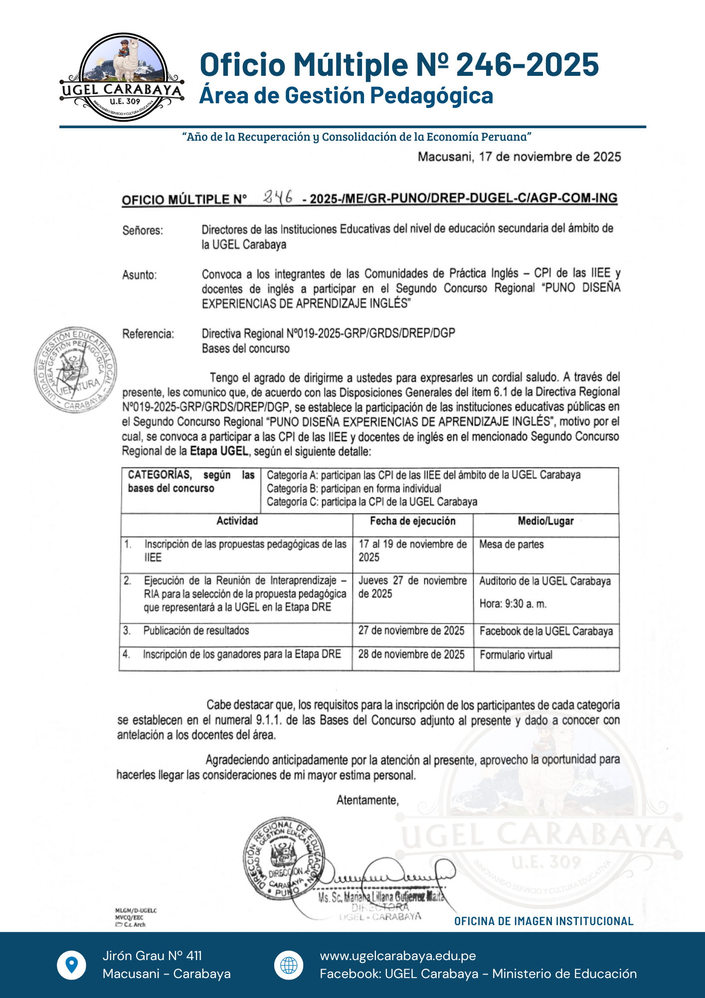 CONVOCA A LOS INTEGRANTES DE LAS COMUNIDADES DE PRÁCTICA DE INGLÉS - CPI DE LAS IIEE Y DOCENTES DE INGLÉS A PARTICIPAR EN EL SEGUNDO CONCURSO REGIONAL "PUNO, DISEÑA EXPERIENCIAS DE APRENDIZAJE EN INGLÉS" 2025