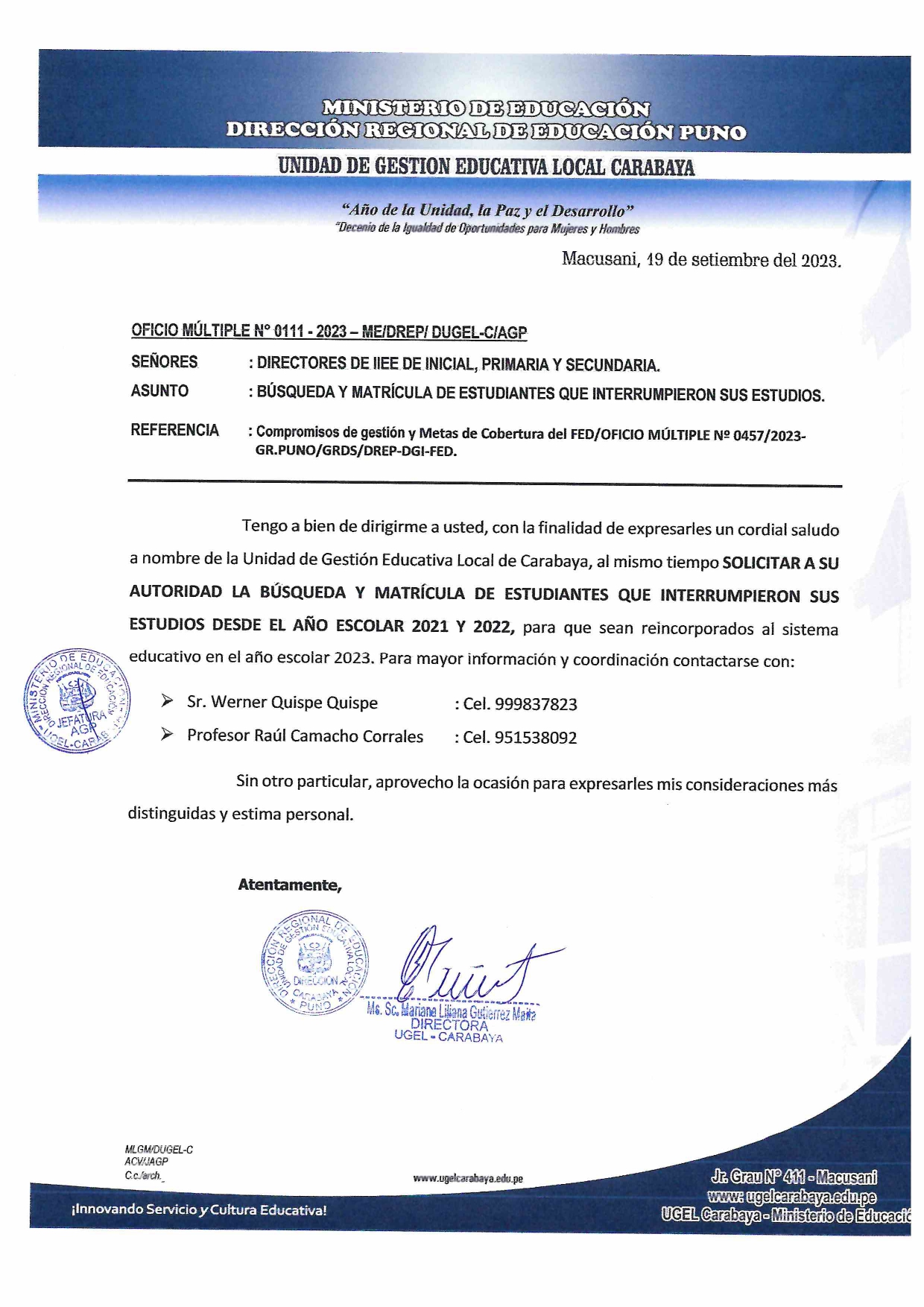 DIRECTORES DE TODOS LOS NIVELES Y MODALIDADES DE LA UGEL CARABAYA: INVITACIÓN A PRODUCCIÓN INTELECTUAL SOBRE LA IMPLEMENTACIÓN DEL MODELO DE SERVICIO EDUCATIVO DE EDUCACIÓN INTERCULTURAL BILINGUE EN LA REGIÓN PUNO 2024